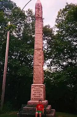 The Joseph R. Brown State Wayside Rest is located on Renville County Highway 15, south of Sacred Heart, Minnesota. The site displays the granite ruins of Brown's home, which was destroyed on August 19, 1862, during the Dakota War of 1862. The three-story home was a considered a mansion when compared with many other pioneer homes of the day.