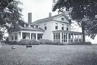 Arriving in 1811 from Pompey, New York, Joseph Sawyer's family was one of the earliest pioneers to settle in the Connecticut Western Reserve area of Ohio. He built one of the first gristmills in the area and around 1825 he contracted with Jonathan Goldsmith[3] to build a new home in the Greek Revival style. By the time of his death in 1849, Sawyer had amassed over 1,100 acres,[8] making his one of the largest farms in Lake County, Ohio.[9] The house remained in the family until 1883 when his grandson sold it to Luthur L. Cook, a prominent businessman who founded L. L. Cook & Brothers.