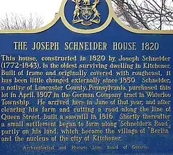 7. ^ "Joseph Schneider Haus Historical Plaque". ontarioplaques.com. Retrieved 30 September 2018.