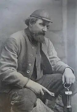 Like many children of that era, Skipsey started work in the local pit at the age of seven as a trapper.[2] In order to break the boredom of the long hours in darkness, Skipsey taught himself to read and write by copying the text from discarded newspapers, adverts, playbills and other printed materials in chalk onto the wooden door he worked at. As his abilities grew Skipsey began, like many other working-class writers, to read canonical writers and was deeply influenced by Shakespeare, Robert Burns, John Milton and Goethe, with Milton's Paradise Lost having a profound influence over him. In an interview he gave to The Pall Mall Gazette in 1889, Skipsey told the newspaper that his first attempts at creating verse came when the older boys in the pit would sing incomplete versions of popular songs.[4] Feeling frustration at these half-remembered songs, Skipsey would fill them out with his own words to match the rhythms and the rhymes he picked up. From here he began to write his own verses and poems before finally committing them to paper and, ultimately, to print.