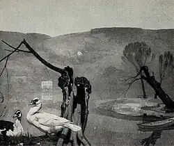He attained early notoriety as a landscape painter for works influenced by Japanese art, and often featuring birds and animals.[7] Among these was On the Valley, exhibited at PAFA in 1916: