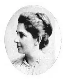 She married Lindon Wallace Bates (born 1858), a hydraulic engineer, of New York City, on April 6, 1881,[4] becoming a U.S. citizen by marriage.[3] The couple lived in Portland, Oregon for a number of years. She was active in the Preparedness Movement; in 1916, she published a pamphlet "Keep America Safe".[5] In 1908, she became a member of the Lyceum Club, having been sponsored by Lou Henry Hoover. She was also a member of Colony (New York); as well as Fortnightly, and Friday (Chicago).[4] Bates visited with Herbert Hoover and his wife at their Red House in London for several weeks in 1911.[6]