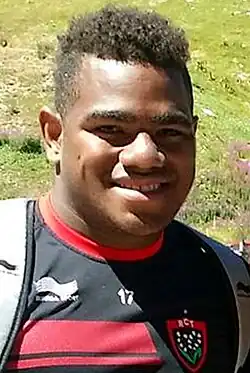 Josua Tuisova Ratulevu (born 4 February 1994) is a Fijian rugby union player. A wing or centre, he currently plays for Racing 92 in France's Top 14.[1] He won a gold medal in sevens as part of the Fiji team at the 2016 Rio Olympics. Known for his strong running and physical play, he is nicknamed "Human Bulldozer" and "The Bus".