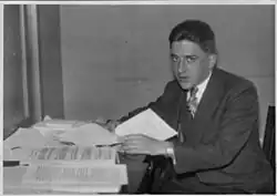 Josiah Ellis DuBois Jr. (October 21, 1912 – August 1, 1983)[2] was an American attorney at the U.S. Treasury Department who played a major role in exposing State Department obstruction efforts to provide American visas to Jews trying to escape Nazi Europe. In 1944, he wrote the Report to the Secretary on the Acquiescence of This Government in the Murder of the Jews, which led to the creation of the War Refugee Board.[3] After the war, he was a prosecutor at the Nuremberg Trials prosecuting Nazi war crimes, particularly in the prosecution of Holocaust chemical manufacturer IG Farben.