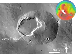 Jovis Tholus is a volcano in the Tharsis quadrangle of Mars located at 18.41° N and 117.41° W. It is 58.0 km across and was named after a classical albedo feature name.[1] It has an elevation of 2,990 metres (9,810 ft).[2]
