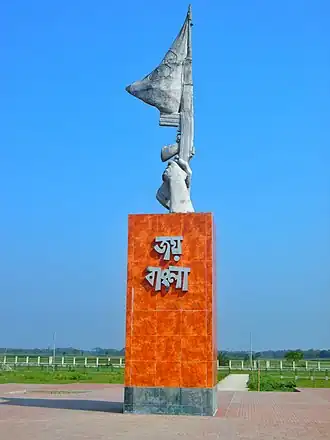 Joy Bangla was the slogan and war cry of the Mukti Bahini that fought for the independence of Bangladesh during the Bangladesh Liberation War in 1971.[16] In Bangladesh Liberation War, 27 March 1971 Major Ziaur Rahman broadcast announcement of the declaration of independence on behalf of Sheikh Mujibur Rahman and he finished with "Joy Bangla".[17]