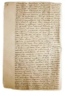 His actions as attorney-in-fact in judicial and commercial matters were concerning to some of the main political leaders of the Viceroyalty like Juan de Dios Salas,[14] Bernabé González Bueno,[15] Martín Grandoli,[16] and Joseph Medianero, a Spanish official who served in the Fuerte de Floridablanca.[17] He also intervened as a representative of Mariano Tristán y Moscoso, in a sale contract for this to Manuel Arredondo y Pelegrín, regent of Buenos Aires.[18]
