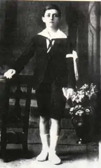 Fangio was born in Balcarce on 24 June 1911, San Juan's Day, at 12:10 am.[7] His birth certificate was mistakenly dated 23 June in the Register of Balcarce.[8] He was the fourth of six children.[9] In his childhood he became known as El Chueco, the bandy-legged one, for his skill in bending his left leg around the ball to shoot on goal in football games.[9]