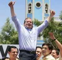 Juan Pablo Isidoro Guanipa Villalobos (born 20 December 1964) is a Venezuelan lawyer and politician who served as deputy and First Vice President of the National Assembly, leader of the Justice First political party and former governor of Zulia. He was a presidential candidate in the 2018 elections until boycott. Guanipa is the regional coordinator of the Justice First party in Zulia and chairs the Maracaibo Posible foundation.[1][2][3]