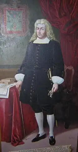 Among other duties of public official, Juan de Lezica y Torrezuri was the commander of "La Atrevida", a militia of the Cuerpo de Blandengues de la Frontera de Buenos Aires, in charge of punitive expeditions against infidel Indians.[4] He also served as mayor of 1st vote of Buenos Aires and of La Paz.[5] In 1755, he founded the town of Luján.[6]