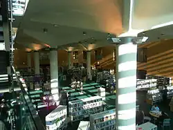 Some internal design features have been criticised. Only a single staircase on one side of the building connects the three storeys. It leads into "claustrophobic" corridors which contrast with the open spaces of the main building. The large internal space makes the stock displays appear modest.[19] The shelving units have been described as "awful"[11] and "well below the design quality" of the rest of the library.[19] The opening hours were considered inadequate by some, but were later extended.[28][29]