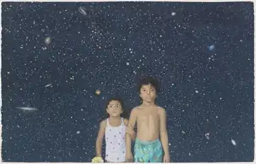Critics such as Alan Artner noted that Raphael's subsequent work dispensed with art historical and period references and became "subtler in expression" of adolescence.[2][24][8] It took two forms: single figures set against highly saturated, decontextualized grounds, the lack of contextual clues foregrounding contemporary stances and attitudes; and larger, multi-figure scenes depicting active or aggressive behavior—jumping, shouting, conversing or confronting, striking martial arts poses—that continued to break from conventional gender representation.[2][24][6] Works such as Hang Tight or Free Fall (2008) portrayed girls skydiving, trailing smoke from their heels and doing wheelies on bicycles in the open sky, unrestrained and serene, without a hint of danger.[8][4] In another later series, Raphael depicted two children––her grandchildren from her late son––as vulnerable and ephemeral, yet anchored to earth, against seas of stars or lush gardens (e.g., Surveying the Universe, 2012).[8]