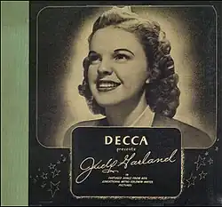 Judy Garland Souvenir Album is the debut compilation album by Judy Garland. It was released in 1940, by Decca Records.[2] The album includes six tracks, featuring two from her 1937 single "(Dear Mr. Gable) You Made Me Love You"/"You Can't Have Everything" and others recorded between 1937 and 1939.[1]