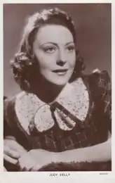 Julie Aileen Kelly (1 November 1913 – 22 October 1991), known professionally as Judy Kelly, was an Australian-born British actress.[1] She arrived in Britain in 1932 after winning a competition organised by the Australian British Empire Films, which included 3 months tuition at the British International Studios at Elstree.[2] She appeared in a number of films for British International Pictures during the 1930s. She was sometimes cast as a love interest for the comedian Leslie Fuller, and also appeared alongside the musical stars Gene Gerrard and Stanley Lupino.