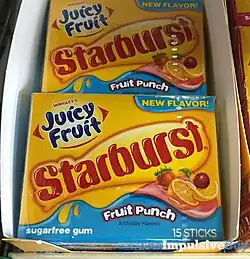 Juicy Fruit is an American brand of chewing gum made by the Wrigley Company, a U.S. company that since 2008 has been a subsidiary of the privately held Mars, Incorporated. It was introduced in 1893, and in the 21st century the brand name is recognized by 99 percent of Americans, with total sales in 2002 of 153 million units.