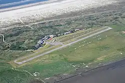 Juist Airfield (German: Flugplatz Juist, IATA: JUI, ICAO: EDWJ) is an airfield on the island of Juist in Lower Saxony, Germany. The airport serves regular flights to Norden-Norddeich Airfield on the mainland.[3] As of 2013, the airfield had up to 500 takeoffs and landings on weekends, the second most aircraft movements in the state of Lower Saxony, after Hannover Airport.[4] The airfield is a critical piece of infrastructure for the island, due to ferry traffic being dependent on the tides.[4]