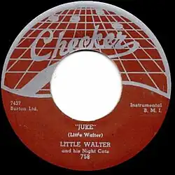 "Juke" is a harmonica instrumental recorded by the Chicago bluesman Little Walter Jacobs in 1952. Although Little Walter had been recording sporadically for small Chicago labels over the previous five years, and had appeared on Muddy Waters' records for Chess Records since 1950, "Juke" was Little Walter's first hit, and it was the most important of his career. Due to the influence of Little Walter on blues harmonica, "Juke" is now considered a blues harmonica standard.