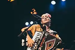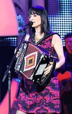 Julieta Venegas Percevault (Spanish pronunciation: [xuˈljeta βeˈneɣas];[a] born 24 November 1970)[1] is a Mexican singer, songwriter, instrumentalist, and producer who specializes in pop-rock-indie music in Spanish. She embarked on her musical journey by joining several bands, including the Mexican ska band Tijuana No!. Venegas is proficient in playing 17 instruments, including the acoustic guitar, accordion, and keyboard.