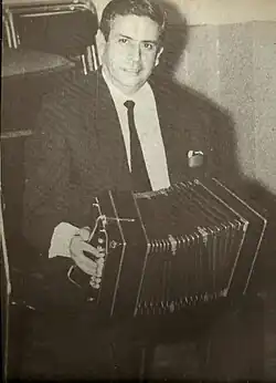 He began his professional career as a bandoneon player in the orchestra of his teacher Abel Bedrune, where Antonio Ríos also played. At the age of 20, he moved to Buenos Aires,[2] to the legendary Pensión La Alegría, a boarding house located at 321 Salta Street where many musicians connected to tango lived, including prominent figures such as Emilio Barbato, Homero Expósito, Enrique Francini, Cristóbal Herreros, Enrique Munné, Armando Pontier, Antonio Ríos, Ernesto Rossi, Héctor Stamponi, Alberto Suárez Villanueva, and Argentino Galván.[3]
