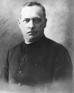 During the 1931 elections the Carlists were negotiating alliance with PNV; already an iconic figure of the Basque cultural movement, Urquijo emerged as an excellent candidate, though it seems that he was more difficult to accept for the Carlists rather than for the nationalists.[66] Officially a católico-fuerista candidate[67] he emerged victorious from Gipuzkoa and joined the Basque-Carlist minority.[68] As political tension mounted he is reported as "not uninterested in the idea of a general Catholic rising", though insurrectional concept has not even passed to the planning phase;[69] Urquijo was also noted for intransigent defense of Catholic Church.[70] It is not clear whether legal action against Urquijo, considered by the Cortes,[71] had anything to do with conspiracy or whether it was rather related to his engagement in the conflict between Republican authorities and the primate Segura.[72]