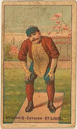 ![]() McGinnis erroneously depicted on an 1887 baseball card as a catcher | |
