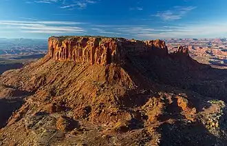 Junction Butte is a 6,400-foot-elevation (2,000-meter) summit located in the Island in the Sky District of Canyonlands National Park, in San Juan County, Utah.[3] It is set about one mile south of the southern tip of Island in the Sky. A short hike to Grand View Point provides a view of Junction Butte. Access to this butte is via the four-wheel drive White Rim Road, which is another option to view Junction Butte. Topographic relief is significant as the top of this geological formation rises 1,400 feet above the road in less than one mile. Precipitation runoff from Junction Butte drains east into the nearby Colorado River, and west into nearby Green River. Junction Butte is situated north of the junction of these two major rivers.