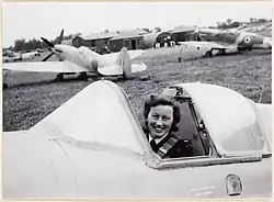 In December 1943, Howden travelled to England and joined the Air Transport Auxiliary.[3] While serving with the ATA, she flew twenty-two different types of planes, including Spitfires, Fireflies, Barracudas, and Mustangs. Howden flew all over Britain, transporting mail, dispatches and medical supplies and ferrying new repaired and damaged aircraft between factories, assembly plants, active-service squadrons and airfields.[2]