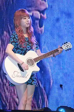 Juniel made her debut in 2011 with the extended play Ready Go, which was released in Japan. She composed all the songs in the album and later took part in writing lyrics, as well as composing all her songs in subsequent Japanese releases.[1] On March 6, 2013, Juniel released her first Japan major album titled Juni which consists of 11 self-composed songs and a Japanese version of duet song 'Babo' with CNBLUE's Jung Yong-hwa.[2]