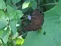 | Junonia cymodoce (Cramer, [1777]) | western leaf, blue leaf butterfly | Guinea, Ivory Coast, Ghana, Togo, Benin, Nigeria, Cameroon, Equatorial Guinea, São Tomé and Príncipe, the Republic of the Congo, Angola, the Central African Republic, the Democratic Republic of the Congo, western Uganda, western Tanzania and north-western Zambia | ||