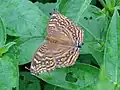 Junonia atlites (Linnaeus, 1763) | grey pansy or gray pansy | India, southern China, Cambodia, Indochina, the Malay Peninsula, western and central Indonesia, and the Philippines. |