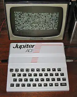 The Jupiter Ace by Jupiter Cantab was a British home computer released in 1982. The Ace differed from other microcomputers of the time in that its programming environment used Forth instead of the more popular BASIC.[1][2] This difference, along with limited available software and poor character based graphic display, limited sales and the machine was not a success.[3][4]