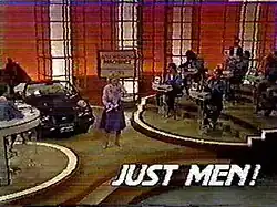 Just Men! premiered on NBC January 3, 1983, along with two other game shows: Hit Man and a revival of Sale of the Century. The program aired at 12:00 noon Eastern/11:00 a.m. Central, though some stations such as WRC-TV in Washington, D.C. aired the program on next-day tape delay.[2] Like many game shows in this time slot, Just Men! suffered from low affiliate clearances, as many larger markets aired newscasts at noon by 1983. The show lasted just thirteen weeks, ending its run on April 1, 1983. It was replaced in its time slot by The New Battlestars, which also ended after thirteen weeks.
