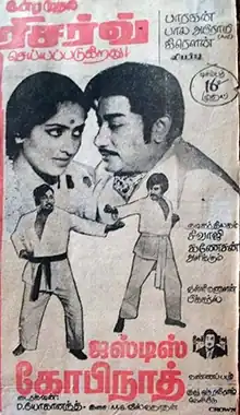 Justice Gopinath is a 1978 Indian Tamil-language film directed by D. Yoganand. The film stars Sivaji Ganesan, K. R. Vijaya, Rajinikanth and Sumithra.[2] It was released on 16 December 1978 and became a box office failure.[3]