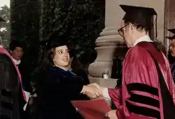 Kagan's childhood friend Margaret Raymond recalled that she was a teenage smoker but not a partier.[13] On Saturday nights, Raymond and Kagan were "more apt to sit on the steps of the Metropolitan Museum of Art and talk."[13] Kagan also loved literature and reread Jane Austen's Pride and Prejudice every year.[13] In her 1977 Hunter College High School yearbook, she is pictured in a judge's robe and holding a gavel.[16] Next to the photo is a quotation from former Supreme Court Justice Felix Frankfurter: "Government is itself an art, one of the subtlest of arts."[17]