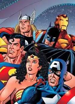 JLA/Avengers (issues #2 and 4 are titled Avengers/JLA) is a comic book limited series and crossover published in prestige format by DC Comics and Marvel Comics from September 2003 to March 2004.[1][2][3][4] The series was written by Kurt Busiek, with art by George Pérez. The series features the two companies' teams of superheroes, DC Comics' Justice League of America and Marvel's Avengers.[5]