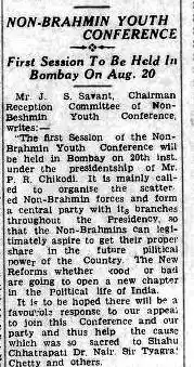 On 19 August 1917, the first non-Brahmin conference was convened at Coimbatore under the presidency of Ramarayaningar. In the following months, several non-Brahmin conferences were organised. On 18 October, the party published its objectives (as formed by T. M. Nair) in The Hindu:
