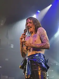 Justin David Hawkins (born 17 March 1975) is an English musician, Internet personality, singer, and songwriter best known as the founder, lead singer, and lead guitarist of The Darkness, of which his younger brother Dan is also a member. He is also the lead singer and guitarist for the band Hot Leg, formed in 2008 and now on hiatus. In 2021, Hawkins launched a YouTube channel entitled Justin Hawkins Rides Again, where he does comedic analysis on songs or artists in addition to covering news in the musical community.[1]