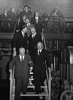 Walden with Nikita Khrushchev at the Kaipola paper mill in 1957