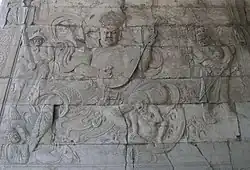 In the middle of the platform's base, there is an arched portal – where people, carts, horsemen, and palanquins could pass through. Many images of people and animals were carved inside the arched gate tunnel and around the portal.