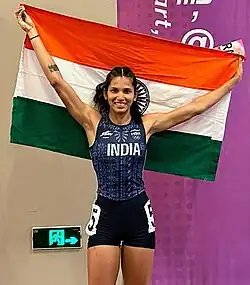 COVID-19 and her back injury saw that she took part in virtually no events in 2021, but she came back strongly in 2022. She represented India at the 2022 Commonwealth Games in the 100 m hurdles and was a part of the Indian 4 x 100 m relay team that came fourth in the finals. At the 2022 edition of India's National Games, she won the Gold in both 100 metres and 100 metres hurdles.[4] On 17 October 2022, she became the first Indian woman hurdler to clock below 13 seconds becoming the second best Asian in the 100 metres women's hurdles in the year and the 11th best Asian ever.[5] At the 2022 Indian Open Nationals, she was adjudged the best athlete among women.[6]