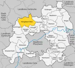 Location of Königsbach-Stein within Enzkreis district ![]() | |