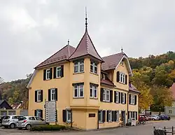 The foundations of a castle of the early Middle Ages possibly erected around 1000 AD on the site of an even earlier castle, of robber-knights, as it is being told can be found on the rock Herwartstein overlooking the valley, which was allegedly destroyed by the son of the emperor of Holy Roman Empire of medieval Germany.
