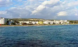Kızkalesi (English: Maiden's castle) is a neighbourhood in the municipality and district of Erdemli, Mersin Province, Turkey.[1] Its population is 1,781 (2022).[2] Before the 2013 reorganisation, it was a town (belde).[3][4] The town, known in Antiquity as Corycus or Korykos (Greek: Κώρυκος), is named after the ancient castle built on a small island just facing the town.