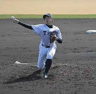 ![]() Moriya with the Hanshin Tigers | |