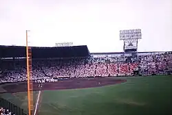 An unusual appearance is in the series Princess Nine, where a private girls' high school forms a baseball team and struggles against systemic bias in the Japan High School Baseball Federation and within their own school in order to make a serious bid at making it to and winning at Kōshien. More recently, the Manga work "Karin´s Mound" (花鈴のマウンド Karin no maundo)[4] also entertained the idea that the Girl's National High School Championship would be also played at Kōshien Stadium, which has happened in the real world since 2021.[5] In the long running baseball video game series Pawapuro Series, it is known that at least three female players (two pitchers and one catcher, until 14) made their name in Kōshien in the main series' original story line (Success Mode) and turned active players in the NPB, through one of them retired later and become a coach and lecturer in Baseball academy.