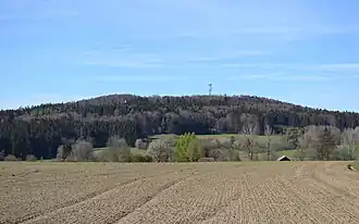 Křemešník is a mountain in the municipality of Nový Rychnov in the Vysočina Region of the Czech Republic. The mountain lies near the town of Pelhřimov and is part of Bohemian-Moravian Highlands. With an elevation of 769 metres (2,523 ft) above sea level, it is the highest mountain of the Křemešník Highlands.