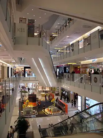 The K11 Art Mall has seven storeys (two underground, five above ground). The B1 and B2 storeys were opened on 27 November 2009, and the rest of the mall was opened on 5 December that year. Retail and restaurants accounted for 80 per cent and 20 per cent of the stores, respectively.