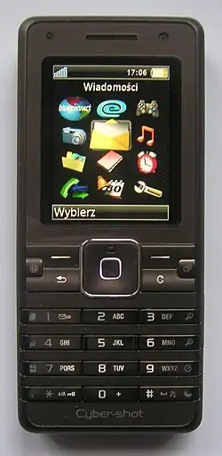 The K770i is a candybar style phone that weighs 95 grams (3.35 ounces).[5] It has the 'dual-front' design common to most Sony Ericsson mobile phones since the T610, with the back of the mobile phone designed like a digital camera and intended to be held sideways to take photographs. The K770i is available in six distinct colours: black, metallic pink, truffle brown, ultra violet, henna bronze and sandy beige.[5] The central joystick button is used for selecting options and navigating menus, with the "C" button as an 'undo' or 'delete' button, and the arrow-labelled button as a 'return' or 'back' button. The two buttons labelled by white horizontal lines, known as 'hotkeys' or 'soft keys' perform the function of making binary decisions, labelled on the phone's display. The button in between the right 'soft key' and the "C" button acts as a shortcut key, which brings up a user-customisable shortcut menu when pressed. The button in between the left 'soft key' and the 'back' button acts as a shortcut key, which opens the home page in the browser. The on/off button is located on the top of the phone.