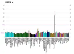KCNE1 is expressed in human heart (atria and ventricles), whereas in adult mouse heart its expression appears limited to the atria and/or conduction system.[32] KCNE1 is also expressed in human and musine inner ear[33] and kidneys.[34] KCNE1 has been detected in mouse brain[35] but this finding is a subject of ongoing debate.