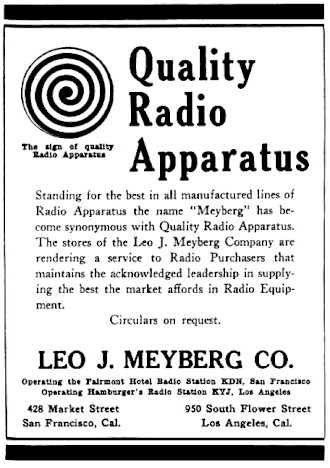 - ^ Leo J. Meyberg Co. (advertisement), Radio, December 1921, pages 218-219.